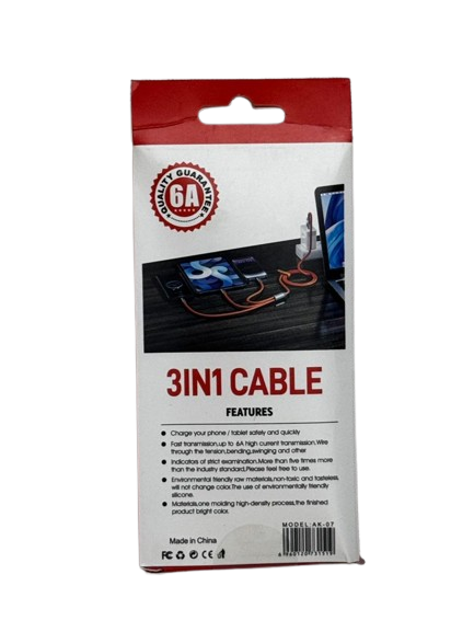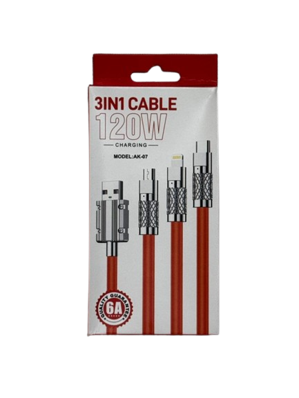 - کابل شارژ سیلیکونی سه کاره 120 وات 6 امپر