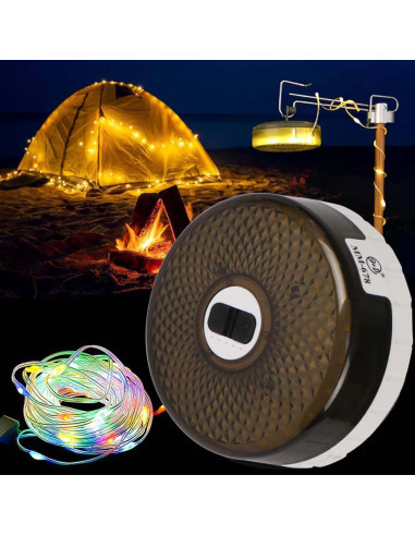 این دستگاه یک چراغ آویز شارژی میباشد که در داخل آن یک ریسه شارژی با نور زرد رنگ به طول 12 متر وجود دارد ، از این چراغ میتوان برای کمپ ، مسافرت و جشن ها استفاده کرد. چراغ کمپی 2314 کاملا ضد آب می باشد و در برابر باران مقاوم است ، این دستگاه دارای باتری لیتیومی 1800 میلی آمپر می باشد که توسط کابل تایپ سی که در داخل بسته بندی دستگاه وجود دارد شارژ میشود.