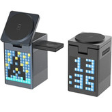 اسپیکر بلوتوث با نمایشگر پیکسلی: اسپیکر داخلی با کیفیت صدای بالا و اتصال بلوتوث برای پخش موسیقی و تماسهای صوتی. نمایشگر LED پیکسلی با قابلیت نمایش انیمیشنهای متنوع و هماهنگ با موسیقی، جلوهای خاص و مدرن به دستگاه میبخشد.