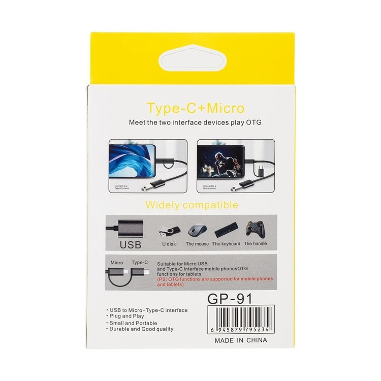 مبدل OTG USB-A 3.0 به USB-C/MicroUSB مدل GP-91 به طول 0.2 متر