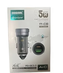 شارژر فندکی خودرو مدل YY-C30 55W فست شارژ به همراه کابل شارژر تایپ سی