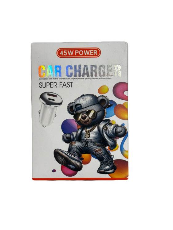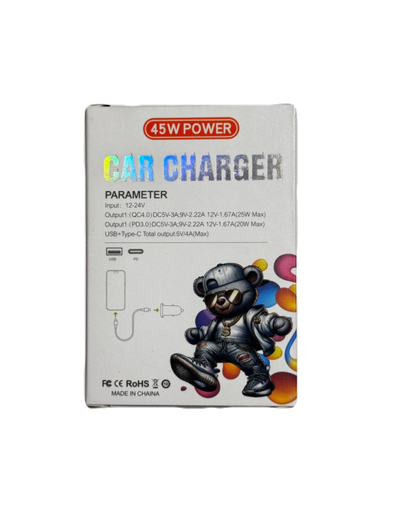 شارژر فندکی خودرو مدل 45w سوپر فست شارژر به همراه کابل شارژر تایپ سی