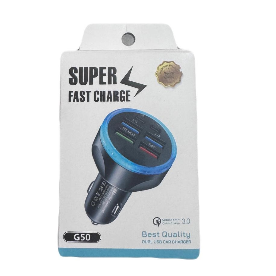 شارژر فندکی فست شارژ 6 پورت G50 به همراه کابل شارژر تایپ سی