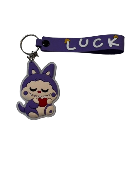 جا کلیدی فانتزی لبوبو مدل "LUCK" با بند بنفش و آویز شخصیت کارتونی