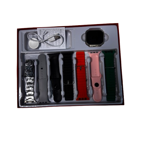 این ساعت هوشمند یک انتخاب بینظیر برای علاقهمندان به تکنولوژی و استایل است. این مدل با طراحی مدرن، امکانات پیشرفته و پک کامل 7+1 بند قابل تعویض، تجربهای شخصیسازیشده و حرفهای را برای شما فراهم میکند.