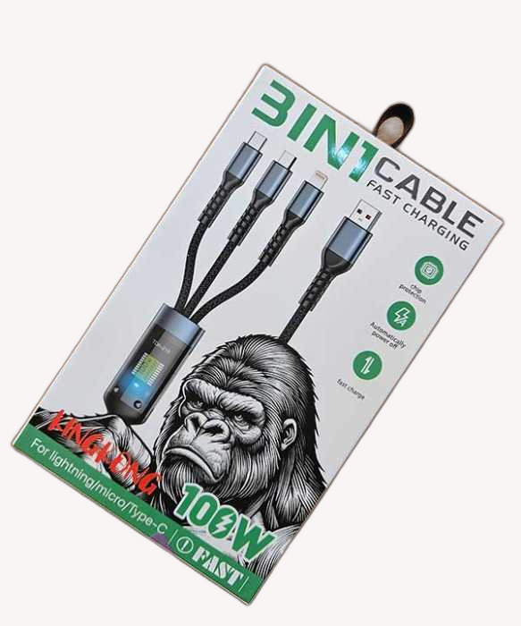 ⚡ کابل فست شارژر ۱۰۰ وات ۳ کاره KINGKONG ؛ ترکیب سرعت، دوام و طراحی هوشمند