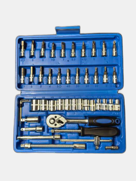 اگر قصد کاملکردن ابزارهای خود را دارید، میتوانید روی محصول فوق حساب کنید. این مجموعه 46عددی و شامل انواع سریهای پیچگوشتی، بکس و آچار اتصال به آنهاست. با دراختیارداشتن این محصول میتوانید بسیاری از پیچ و مهرهها را باز و بسته کنید. برای این مجموعهی 46عددی، سری پیچگوشتی دوسو، چهارسو، ستارهای و آلنی و 13 سری بکس با درایو 1/4 اینچ در سایزهای 4 تا 14 میلیمتر در نظر گرفته است. در کنار این سریهای مختلف، دستهی آچار بکس جغجغهای، دستهی پیچگوشتی، افزایشدهندهی طول و آچار T نیز مشاهده میشود. این مجموعه درون جعبهای پلاستیکی عرضه شده است. وزن کل این مجموعه 1.2 کیلوگرم و جابهجایی آن بسیار راحت است. این مجموعهی جمعوجور از کیفیت ساخت قابلقبولی برخوردار است و خرید بهصرفهای محسوب میشود.