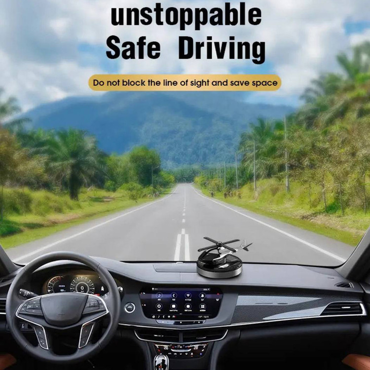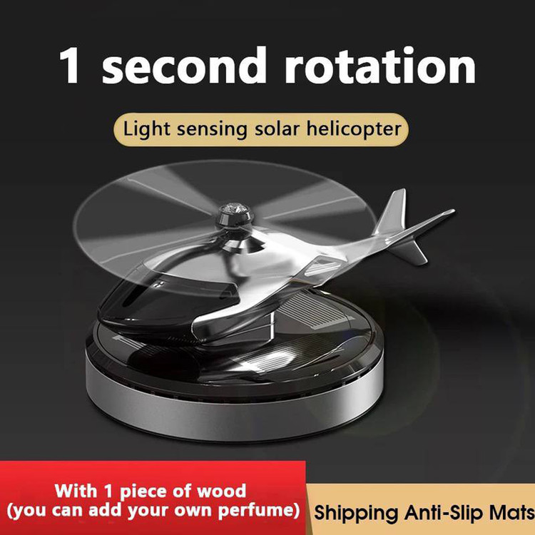 این محصول خاص مدل خورشیدی می باشد که بدون نیاز به باطری با نور خورشید پره های هلیکوپتر شروع به چرخیدن می کند و این محصول را میتوان روی داشبورد یا هر سطح صافی چسباند و این محصول دارای اسانس قطره ای خوشبو ادکلنی و قوی است که با اتمام اسانس می توان با هر اسانس که خودتون علاقه داشتید شارژ کنید . این محصول هم خوشبوکننده است هم تزیینی که زیبایی خاصی به خودرو شما می دهد