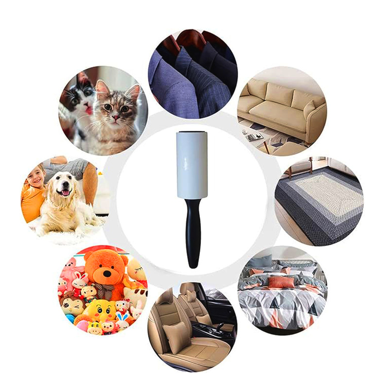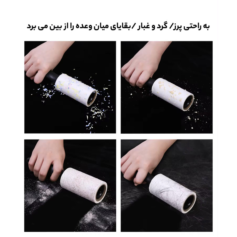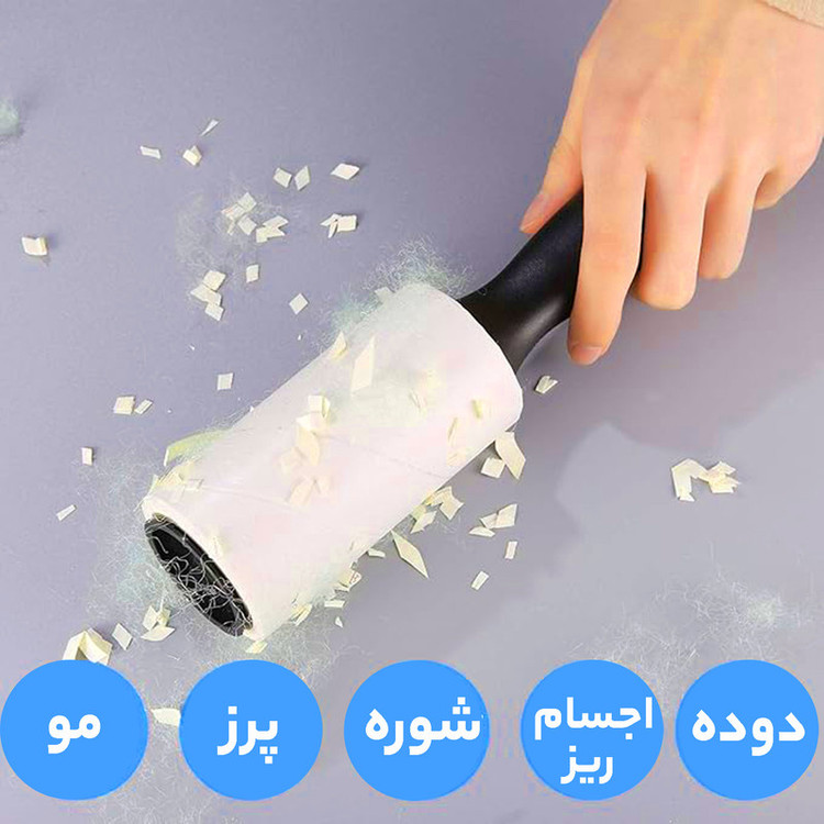 دسته ساخته شده از پلیپروپیلن دارای قابلیت جذب گردوغبار، موی حیوانات، پرز و... از لباس، مبل، صندلیها و... دارای یک حفره روی دسته برای آویز کردن رول در جای دلخواه طول کلی رول 5 متر