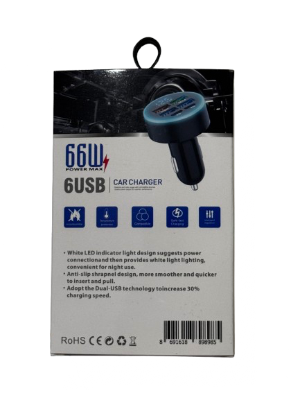 شارژر فندکی 66W شش پورت به همراه کابل دو پورت PD و چهار پورت USB