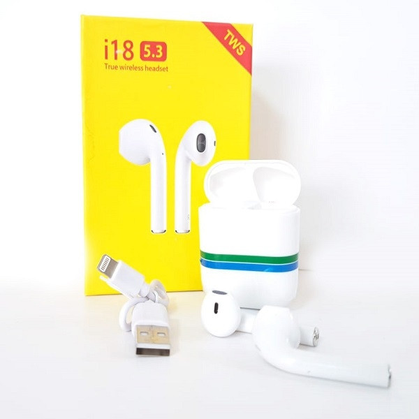 هندزفری مدل i18-TWS با الهام از طراحی بی نقص ایرپاد ، تا حد زیادی مشابه و هم سایز آن ساخته شده است. گوشی های هدست در داخل یک باکس قرار دارند که برای نگهداری و شارژ آنها استفاده میشود. برای شارژ هندزفریها پس از شارژ باتری باکس، به محض قرار دادن هندزفریها در داخل قاب، اتومات شارژ میشوند. با هر بار شارژ کامل هندزفری ها شما میتوانید به مدت 1 تا 2 ساعت بدون وقفه از آن استفاده کنید. در مورد کیفیت صدا، این مدل کیفیت بسیار خوبی دارد و شما با استفده از آن لذت گوش دادن به موسیقی را تجربه خواهید کرد. البته بدیهیست که i18-TWS کیفیت اپل را ندارد اما از کیفیت نسبتا بالایی برخوردار بوده و میتواند انتظارات شما را از یک هندزفری تا حد زیادی برآورده سازد. گوشی ها به صورت لمس یا تاچ کنترل میشود و کلید فیزیکی ندارد. برای جفت شدن یا به اصطلاح Pair کردن هندزفریها و استفاده همزمان برای پخش صدا از هر دوگوشی، لازم نیست شما هیچ کاری انجام دهید، به محض خارج شدن هندزفری ها از قاب شارژ هر کدام از آنها بصورت اتومات روشن شده و با یکدیگر جفت یا به اصطلاح Pair میگردد. پس از اتصال هندزفری ها به هم، لازم است بلوتوث تلفن همراه خود را روشن کنید و از لیست موجود گزینه i18-tws را انتخاب کنید. در این مدل هر دو گوشی دارای میکروفن بوده و قابلیت استفاده و مکالمه به صورت مجزا را دارد.