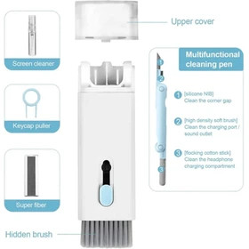 کیت 7 کاره Model Q6E cleaning kit شامل پکیج کاملی از ابزار تمیز کننده مناسب و استاندارد برای ایرپاد – موبایل – کیبورد – لپ تاپ و … میباشد که تمام این پکیج در یک سایز کاملا مناسب قرار داده شده است . این پکیج شامل تمیز کننده 3 کاره ایرپاد و گیره دراوردن دکمه کیبورد و براش تمیز کننده کیبورد و … و مخزن اسپری که داخلش میتواند با مواد تمیز کننده یا الکل پر شود . این پکیج با قیمت فوق العادش میتونه یه پیشنهاد عالی برای شما عزیزان باشه که به لطف ساختار پلاستیکیه خودش وزن نسبتا کمی دارد .